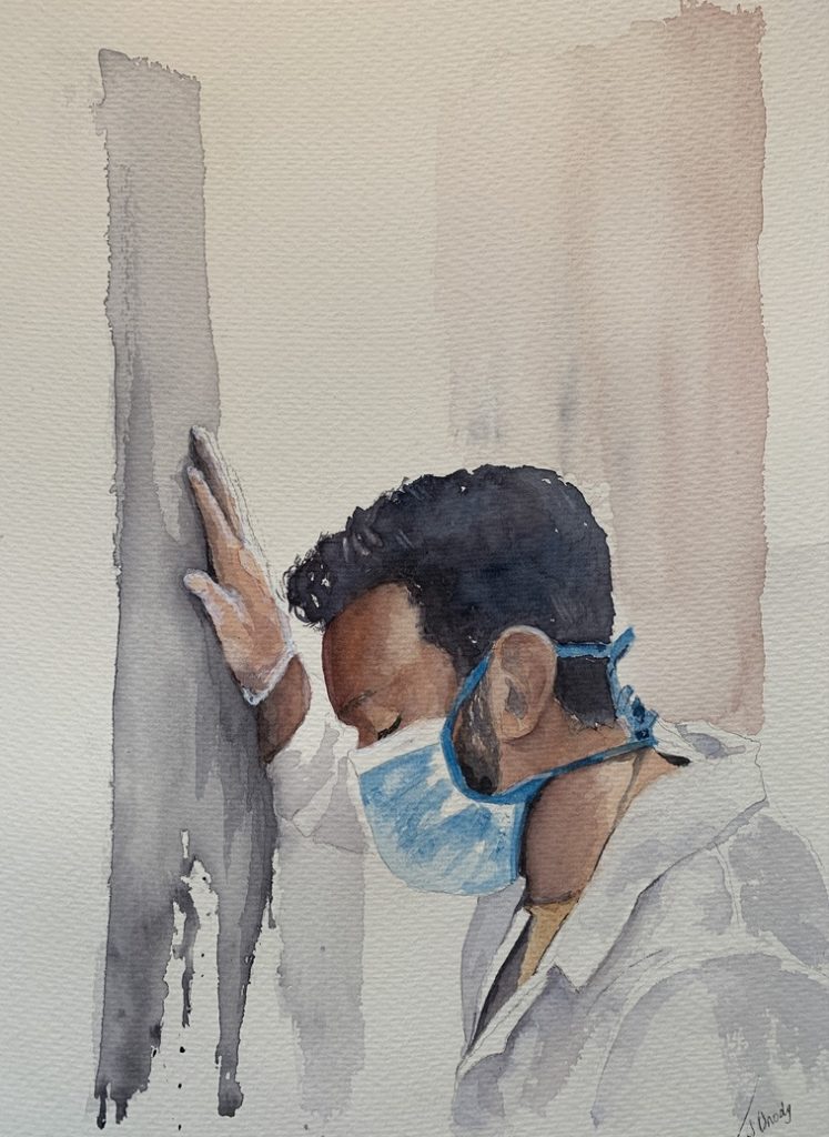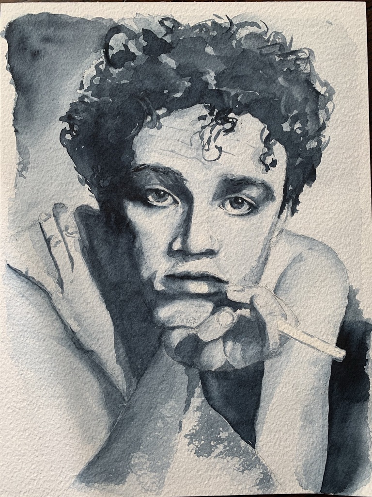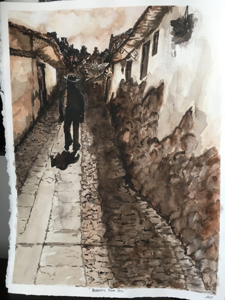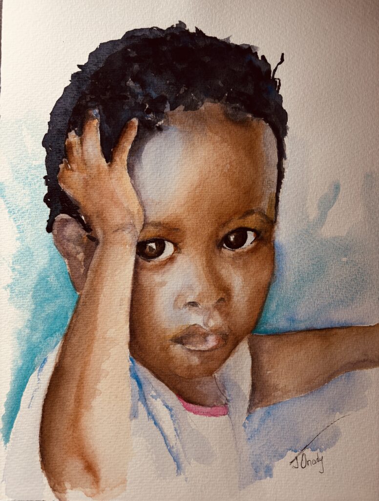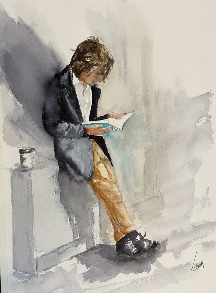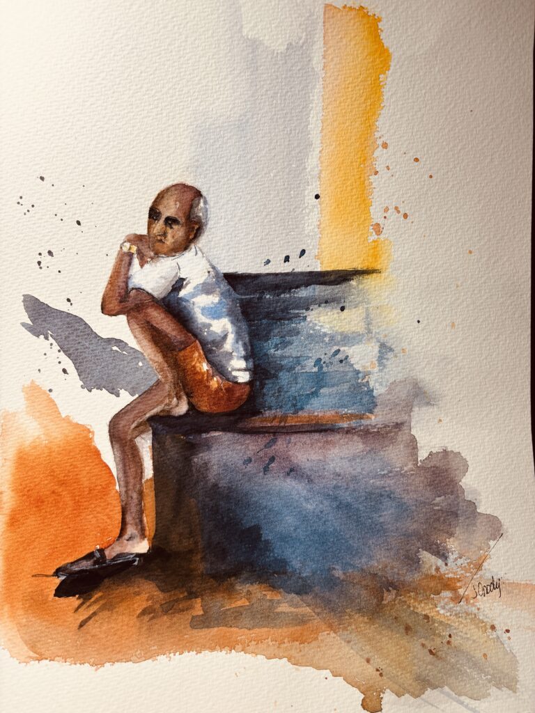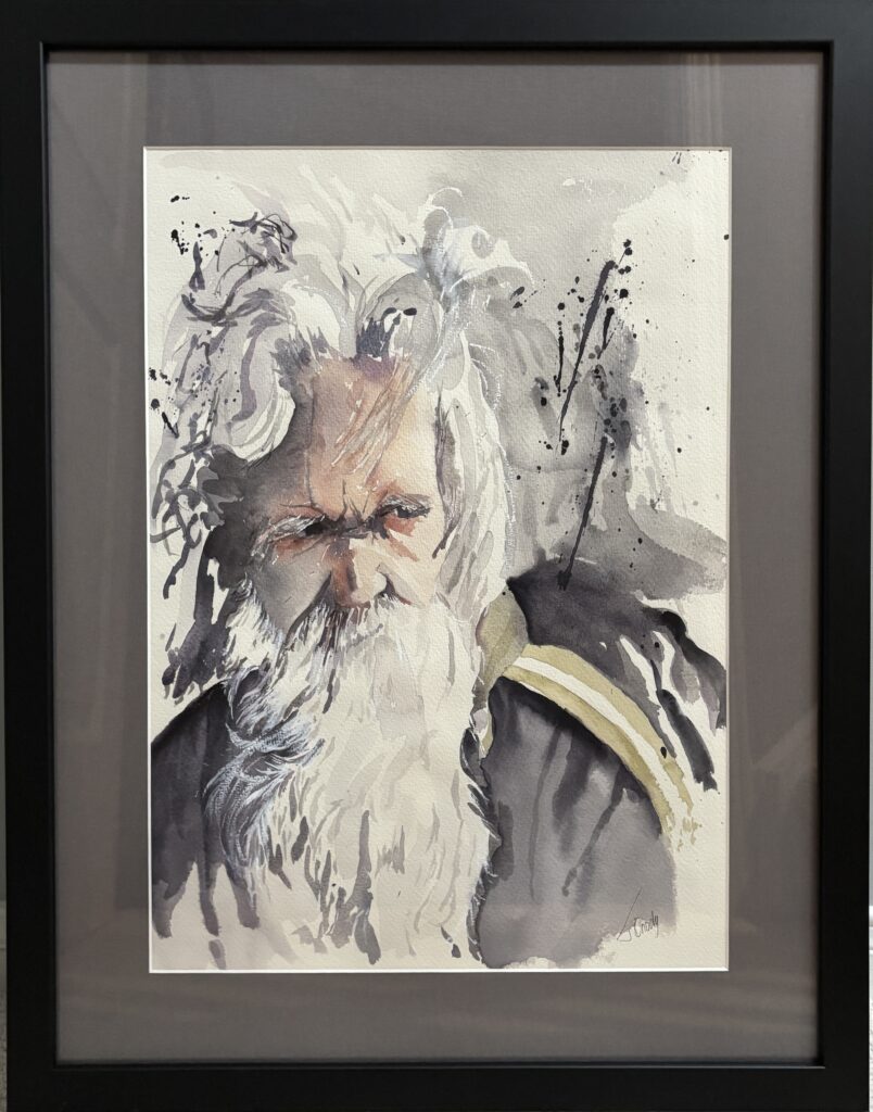 I Have a Story to Tell. 21 x 26 Matted and Framed watercolour